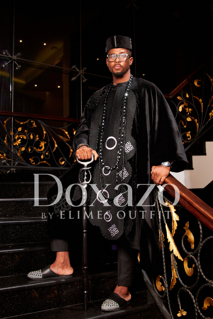 The flowing agbada, woven with a fusion of texture and precision, drapes effortlessly—demanding respect without a single word. The finely detailed fila (cap) crowns you with authority, while the hand-beaded embellishments add an aura of mystery and grandeur.